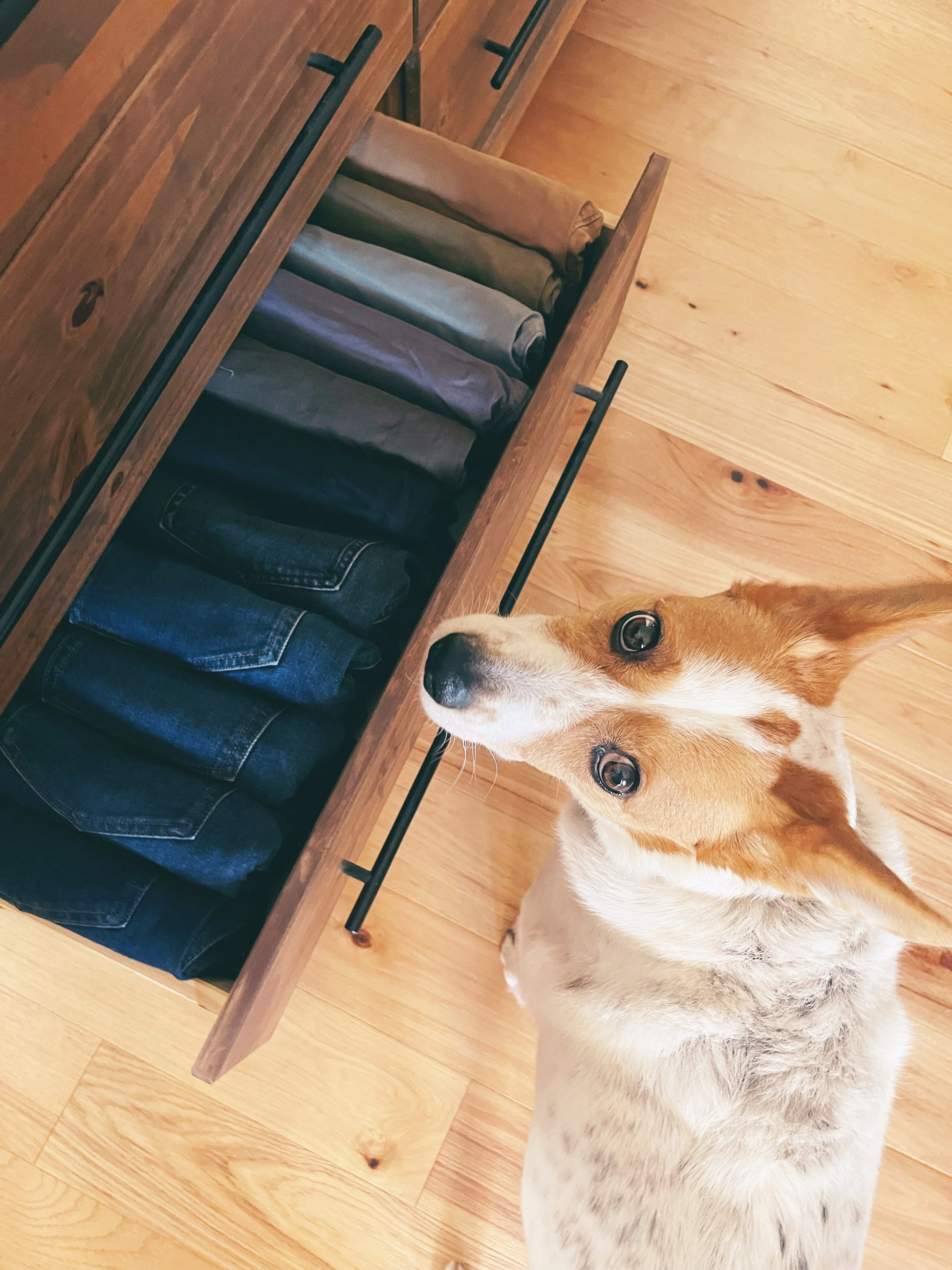 If it sparks joy but doesn’t fit, it’s a little more complex. Here are my thoughts— You deserve to be happy and comfortable in the body you have now. Opening a drawer and seeing a bunch of pants that don’t fit is not good for the psyche. A few years ago I had a bunch of pants in my drawer that no longer fit and here’s how my daily inner voice went– “None if these pants fit. What am I going to wear? All my pants that fit are in the laundry. What’s wrong with me?” None of that felt good. I highly recommend you get rid of things that no longer fit you. Imagine opening your drawer and only seeing things that make you feel beautiful just as you are. If this feels like too much right now, then keep things that don’t fit but DO spark joy in a separate box or basket and revisit them in 6 months or a year. (I normally wouldn’t recommend keeping some clothes separate but our bodies change and fluctuate and life throws a lot at us and that is okay!)