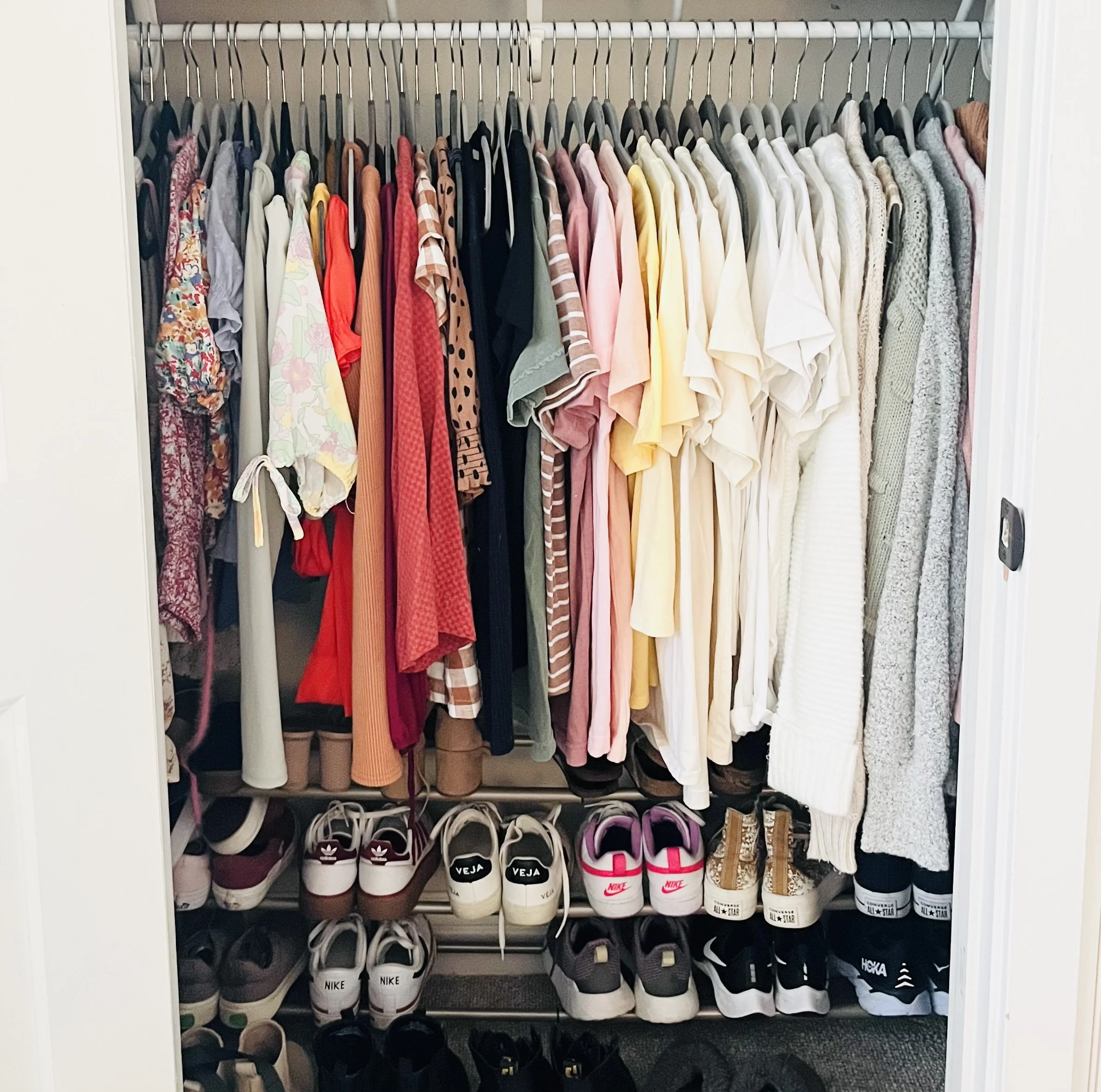 Ideally you would allot an entire day and make one giant pile with all your clothing items on your bed. Seeing everything all in one place can have a big impact on your overall effectiveness. However, life and living situations must be taken into account so here are some alternatives.
